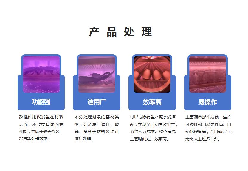功能强:改性作用仅发生在材料表面,不改变基体固有性能;适用广:不分处理对象的基材类型,如金属、塑料、玻璃、高分子材料等均可进行处理;易操作:工艺简单,操作方便,生产可控性强且稳定性高;节能、环保:用气成本低,全程干燥的处理方式,不消耗水资源、无需添加化学药剂、不产生污染。 PLC+触摸屏控制 50/60Hz AC220V(±10V)查看所有产品
